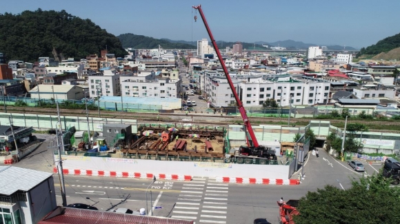 2019년 12월 착공한 김천시 황금동 횡단차도 개설 공사가 현재 순조롭게 진행 중에 있다. 현재 열차를 통과시키면서 시행중인 본 사업에서 가장 중요한 공정인 철로 하부 보강 공사를 진행 중에 있다. 본 공정이 완료되면 사업 추진에 더욱 속도가 붙을 것으로 예상된다. 김천의 대표적인 전통시장이 황금시장과 중앙시장을 연결하는 횡단차도는 용파사거리에서 한신아파트 방면 경부선 철로에 총사업비 43억원을 투입하여 연장 20m, 높이 2.5m, 왕복 2차선(인도포함)으로 2021년 하반기 완료될 예정이다. 김천시 관계자는 ‘지하차도가 개통되면 지역주민들의 통행불편 해소와 단절된 중앙시장과 황금시장의 연계로 지역경제발전을 가져올 것으로 기대된다.’고 말했다. |