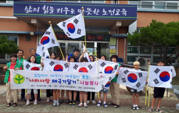 국경일에 태극기를 내걸지 않는 집들이 늘어나는 요즘, 다가오는 제헌절과 광복절에 맞춰 각 가정마다 태극기 달기 운동에 동참할 것을 홍보하고, 초전초등학교에 재학 중인 모든 가정에 태극기 100여개를 무료로 배포하였다.