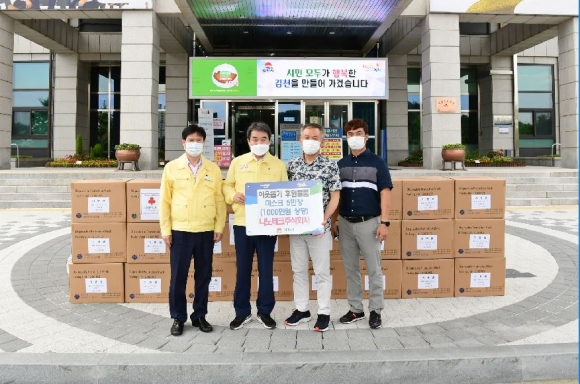 전달식은 나노테크 주식회사 김정헌 대표, 영농법인 다농 김권수 대표, 김충섭 김천시장 등이 참석한 가운데 시청 전정에서 진행되었으며, 이날 기부 받은 일회용 마스크는 관내 사회복지시설 및 저소득 이웃에게 전달될 예정이다.