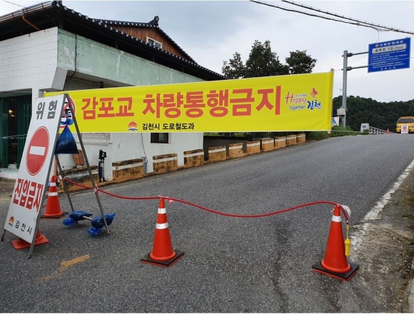 김천시(시장 김충섭)는 감문면 태촌리와 아포읍 의리를 연결하는 감포교 교량 상판 균열이 발견되어, 9월1일 13시부터 교량 긴급보수보강공사 완료시까지 차량통행을 전면 차단한다고 밝혔다. 감천을 횡단하는 감포교(총연장 340m, 폭8m)는 30년 전인 1990년 12월 준공된 교량으로 안전등급이 ‶D″등급으로 교량을 새로이 설치하여야 할 대상으로 관리되고 있으며, 현재 중차량에 대한 통행을 제한하고 있는 교량이다. 최근 10년간에 걸쳐 7회 567백만원의 사업비를 투입하여 보수.보강을 실시하였으나, 교량 내하력 부족등으로 올해 총사업비 220억원(국비110억, 도비 33억, 시비77억)을 확보 교량 개체를 위한 실시설계 중으로 2021년 3월 착공하여 2022년 12월 준공할 예정이다. 김천시 도로철도과 관계자는 “감포교 긴급 복구공사 완료시까지 대동교 방향(아포읍 대신리 ~ 개령면 동부리)으로 우회하도록 입간판, 현수막 설치 등 주민 홍보에 만전을 기하고 있으며, 조속한 복구로 시민들의 교통불편을 최소화 하겠다”고 말했다 |