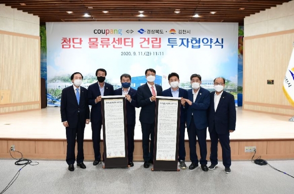 국내 이커머스 1위 기업인 쿠팡의 첨단 물류센터가 2021년 김천일반산업단지에 들어선다. 코로나19로 경기가 침체된 상황에서도 공격적인 기업유치에 총력을 기울인 결과 쿠팡의 첨단 물류센터를 유치하는데 성공했다. 수차례 본사를 방문하고 7월에는 김충섭 시장이 직접 쿠팡 본사를 방문하여 투자제안서를 전달하는 등 광폭 행보의 결과물이다. 김천시(시장 김충섭)와 경상북도(도지사 이철우)는 지난 11일 오전 11시 11분 김천시청 3층 강당에서 김충섭 김천시장과 이철우 경상북도지사, 쿠팡(주) 박대준 대표 등 40여명이 참석한 가운데 첨단 물류센터 건립을 위한 투자양해각서를 체결했다고 밝혔다. 이번 투자협약으로 쿠팡은 김천1일반산업단지(3단계) 2만 7천평 부지에 내년부터 2년간 약 1,000억원을 투자하여 첨단물류센터를 건립할 예정이며, 운영에 필요한 최대 1,000명의 지역주민 우선 고용을 통해 지역경제 활성화에 큰 도움이 될 전망이다.