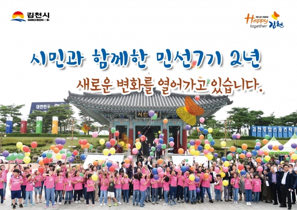 김천시는 시 승격 70주년을 맞은 지난해부터 시민의식 변화 프로젝트인 'Happy together 김천운동'을 시작했다. 미래 100년을 열어가는 김천시가 한 단계 더 업그레이드 된 시민의식을 통해 “대한민국에서 가장 살기좋은 도시”를 만들자는 운동이다. 과거의 잘못된 의식을 과감히 개선해 성숙한 시민의식을 고취시키는 것이다. 중요한 것은 기존 관주도의 단발성 행사가 아니라 체계적인 과정을 통해 전 시민의 자발적 동참을 유도하고 있다. 이 운동을 계기로 미래를 향해 열린도시, 시민과 함께하는 도시로 거듭날 수 있도록 김천을 전국에서 가장 친절한 도시, 가장 질서 있는 도시, 가장 깨끗한 도시로 만들겠다는 것이다. 선진 시민의식 함양, 지역정체성 확립 이 운동이 성공적으로 정착된다면 김천시는 인정과 배려가 넘치고, 미래를 앞서나가는 선진 시민의식으로 도시 경쟁력을 높이게 될 것이다. 그리고 ‘Happy together 김천’ 운동으로 지역의 정체성을 새롭게 확립하는 계기가 되고 있다.