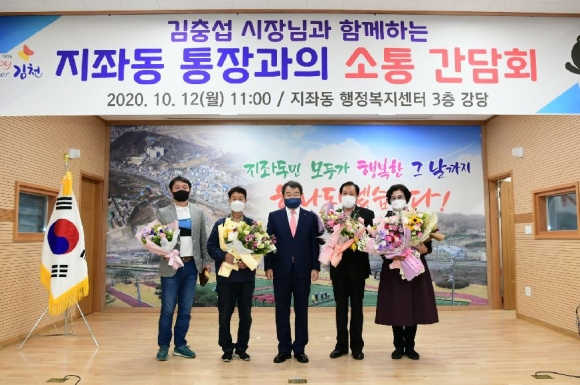 김천시 지좌동에서는 지난 12일 동 행정복지센터 3층 강당에서 김충섭 김천시장이 32명의 지좌동 통장들과 직접 만나, 코로나 19 국면에서 시정 최일선을 담당해온 노고를 치하하고 생생한 주민의견을 나누기 위한 소통 간담회를 개최하였다.
