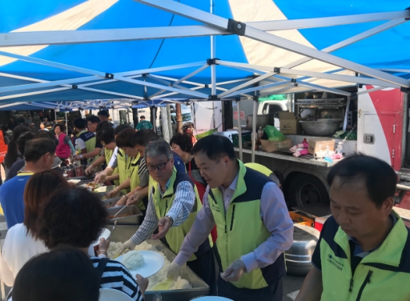 [밝은미래신문=뉴스팀]대구상공회의소 대구기업발전협의회(회장 박순경, 한독정공 대표)는 4일(목) 두류공원에서 무료급식 봉사활동을 실시했다. 이날 봉사활동에는 박순경 대구기업발전협의회 회장을 비롯하여 대구기업발전협의회 회원 20여명이 참가했으며, (사)사랑해밥차에 급식 성금을 전달하고 독거노인, 노숙자, 장애인 등 취약계층 700여명에게 급식 봉사를 했다. 박순경 회장은 “따뜻한 한끼의 식사로 이웃과 소통할 수 있는 소중한 시간이었다”며, “앞으로 우리 경제인들은 더 낮은 자세로 이웃과 함께 하기 위해 노력하겠다”고 말했다.