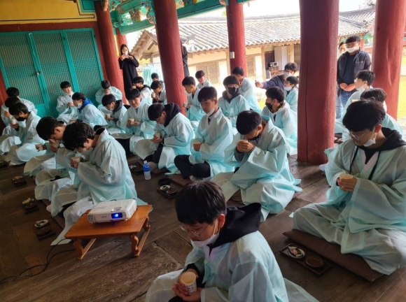 성의중학교(교장 안중기)는 21일 1학년 대상으로 경주 서악서원에서 “신화랑 풍류와 선비 체험” 진로체험학습을 실시하였다. 학교는 그동안 코로나-19로 인한 대면·비대면 수업 활동을 병행하면서 힘든 일상에서 벗어나 학생들의 자발적인 학습에 참여하는 기회를 제공하였다.