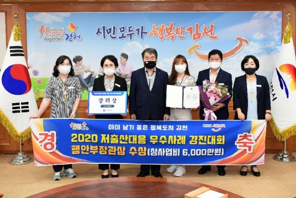 김천시(시장 김충섭)에서는 전국에서 최초로 초기양육의 고충을 덜어주고자 출산 후 가장 힘든 시기인 100일까지 총 30일의 산후도우미 서비스를 이용할 수 있도록 본인부담금의 90%를 김천시에서 지원해줌으로써 출산가정의 경제적인 도움과 행복한 육아 돌봄이 되고 있어 출산가정의 열띤 호응을 얻고 있다.‘산모․아기 돌봄 100일 대작전’시행 이후 서비스 이용률이 71%로 꾸준히 증가하여 전년대비 13%나 증가하였으며, 산후 우울증 감소, 일자리창출 등 사업의 우수성을 인정받아 저 출산 대응 지자체 우수사례 경진대회에서 행정안전부장관상과 더불어 특별교부세 6천만원의 시상금도 받았다. 또한 산모․아기 돌봄 사업은 지속적으로 신청자가 늘어남에 따라 이번 추경에 3억원의 예산을 더 확보하여 총 13억원으로 더 많은 출산가정이 서비스를 이용 할 수 있도록 다양한 매체를 통해 홍보활동에도 박차를 가하고 있다.