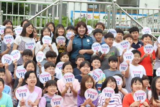 [밝은미래신문=뉴스팀]대구종로초등학교(교장 최병상)는 지난 9일 대구중부경찰서 주최로 대구 출신 개그우먼 김민경과 학교폭력예방 홍보 영상 제작에 참여하였다. 학생들은 학교폭력예방 홍보대사로 위촉된 김민경과 즐거운 학교생활을 위한 4가지 약속-짖궂은 장난하지 않기, 예쁘고 바른말 쓰기, 친구를 놀리거나 따돌리지 않기, 혼자 고민하지 말고 도움 요청하기-을 힘차게 외치며 학교폭력예방에 대한 실천 의지를 다졌다. 또, ‘학교폭력 NO! 친구사랑 YES!’라는 홍보부채를 들고 캠페인에 참여하였다. 학생들의 눈높이에 맞춘 실천다짐과 캠페인은 다시 한 번 학교폭력 근절에 관심을 가지는 계기가 되었다. 학생들과 김민경의 다양한 활동 모습을 담은 영상은 SNS, 유튜브, 청라버스(골목투어버스) 등에서 학교폭력예방 홍보에 적극 활용될 계획이다. 박모 학생(6년)은 “방송에서 보던 개그우먼과 함께 학교폭력예방을 위한 홍보 영상을 만들게 되어 너무 신기하고 뿌듯하였다. 그리고 친구들을 배려하며 사이좋게 지내야겠다고 생각했다.”며 소감을 전했다. 최병상 교장은 “방송인과의 영상 제작으로 학생들이 학교폭력예방의 중요성을 되새기고 서로를 이해하고 존중하며 생활하려는 마음을 다지게 되었다.”며 “앞으로 유관기관과의 상호 협력으로 학생들이 안전하고 행복하게 생활할 수 있는 종로배움터를 만드는데 지속적인 관심과 지원을 아끼지 않겠다.”고 말했다.