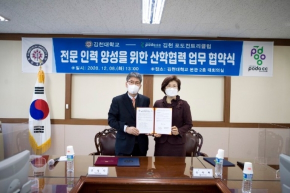 김천대학교(총장 윤옥현)는 김천포도컨트리클럽(대표 안성기)과 08일 김천대학교 본관 2층 대회의실에서 전문인력 양성을 위한 업무협약(MOU)을 체결했다.