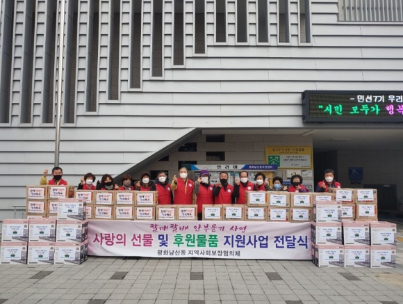 평화남산동 지역사회보장협의체는 12월 18일 오후 3시 평화남산동 행정복지센터에서 관내 독거노인 등 소외계층을 대상으로 전기요와 선물세트 전달식을 가졌다.평화남산동 지역사회보장협의체(위원장 고진석)에서 연말을 맞아 지역사회보장협의체 위원들 회비 및 후원금으로 따뜻한 겨울을 나기 위한 전기요와 생필품(목욕세트, 두유, 라면 등)을 구입해 경제적으로 어려운 관내 독거노인 및 복지사각지대 취약계층 50가구를 방문해 전달하고 안부를 확인하였다. 해당 행사는 코로나 방역수칙을 준수하여 최소한의 인원으로 진행하였다.고진석 민간위원장은 “올 한해는 코로나19로 어려운 시기를 겪고 있어 어려운 이웃들이 소외감을 느끼지 않기를 바라며 선물을 준비했다. 협의체의 작은 도움이 어려운 분들에게 힘이 되었으면 한다.”고 말했다.양준영 공공위원장은 “추운 날씨에도 따뜻한 나눔을 위해 동참해주신 협의체 회원님들께 감사드리며 모두가 따뜻한 연말이 되도록 함께 노력하겠다.”고 전했다. |