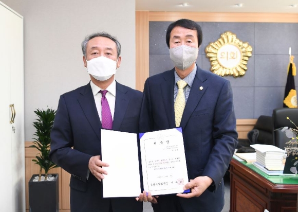 김천시의회(이우청 의장)는 9일 오전 의장실에서 제220회 임시회에서 선임된‘2020회계연도 결산검사위원’에게 위촉장을 수여했다.결산검사위원은 모두 5명으로 대표위원에 박해수 시의원을, 위원으로는 풍부한 경험과 전문성을 갖춘 박세천(前 회계과장), 오세복(前 김천농협지점장), 이종섭(前 김천시의회 전문위원), 최국현(前 회계과장) 4명의 위원을 위촉했다.