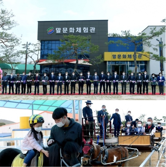 영천시(시장 최기문)는 전국 16개 공공승마장 중 최초로 17일 임고면에 위치한 운주산승마조련센터에 가족 단위 승마체험 공간인 말문화체험관을 개장했다. ‘말문화체험관’은 건전한 미래 인력 양성과 새로운 승마 콘텐츠 개발 보급을 위해 2019년 말산업육성지원사업으로 운주산승마조련센터 내에 총 사업비 15억원으로 건립한 연면적 218㎡, 지상1층 시설이며 ‘말’을 매개로 한 다양한 체험과 문화를 경험할 수 있는 복합공간이다.