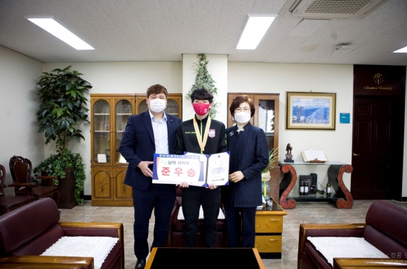 지난 1일, 김천대학교(총장 윤옥현) 스쿼시부가 창단 첫해 첫 전국대회인 제17회 대한체육회장배 전국스쿼시 선수권대회에서 남자 대학부 복식 우승, 단식 3위를 기록한데 이어 지난 14일 스쿼시계의 선구자인 아시아연맹 김원관(아호; 태산) 수석부회장의 발자취를 기리기 위해 신설 개최된 ‘제1회 태산배 전국스쿼시선수권대회’ 복식에서 이용정(항공호텔전공), 김승현(항공호텔전공) 선수가 우승, 대학부 남자 단식에서 김승현 선수가 준우승을 차지하였다.  이번 대회 복식 우승으로 전국대회 2연패를 기록하는 놀라운 성과를 올리며 대학부 다크호스가 아닌 최강팀으로 자리매김하였다.또한, 창단 첫 대회에서 단식 3위를 기록하였던 김승현 선수는 쟁쟁한 선수들을 물리치며 결승까지 올라가는 눈부신 기록으로 대회를 마감 지었다.김충섭 김천시장은 ‘지역경제 활성화를 꾀하고자 스쿼시 전국대회를 유치하였는데 경제에 이바지함은 물론 지역 대학에서 우승과 준우승이라는 대단한 성과를 보여 스포츠 전문도시 김천의 위상과 더불어 스쿼시 최강 도시로 거듭나고 있다.’며 직접 경기장을 찾아 시상하는 등 남다른 관심을 가졌다.우승과 준우승이라는 결과를 위해 휴일까지 반납하며 선수들을 조련해 온 정창욱 감독은 ‘창단팀의 경험 부족을 걱정했는데 슬기롭게 대처해준 선수들 덕분에 감독까지 유명해졌다.’며 모든 공을 선수들에게 돌렸다.억척같은 노력으로 스포츠 팀들을 창단해 온 김천대학교 윤옥현 총장은 ‘지방대학의 작은 운동부가 수도권 거대 대학의 팀을 이기는 저력을 보여줬듯 김천대학교 모든 구성원이 크고 작은 어려움 앞에서 두려워하기보다 맞서서 싸워 승리를 쟁취할 수 있는 자신감을 가질 수 있음이 가장 큰 소득이라고 생각하며, 앞으로 보여줄 것이 아주 많다, 관심을 가지고 애정 어린 시선으로 대학을 격려하고 지켜봐 주길 바란다.’는 당당하고 거침없는 우승 소감을 밝혔다.