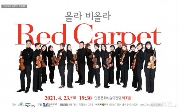 오는 23일 저녁 7시 30분 영화음악 콘서트 ‘올라 비올라의 Red Carpet’이 코로나19 사회적거리두기 지침을 준수하는 가운데 백조홀에서 진행된다. 명작 영화는 음악과 스토리가 잘 어우러져 감수성을 자극하고 감동을 배가시킨다. 특히‘올라 비올라 Red Carpet’은 누구나 공감가는 명작 영화 스토리 속에 음악이 전달하는 감정과 의미를 비올라 앙상블을 통해 즐길 수 있다. 세상의 모든 연인들을 위한 세기의 러브 스토리‘냉정과 열정사이’, 배우 알 파치노가 탱고를 추는 명장면으로 유명한‘여인의 향기’, 톰 크루즈의 액션 영화 ‘미션 임파서블’등 세계적인 명작 영화 OST가 펼쳐진다.올라 비올라만의 특색 있는 연주와 함께 쉽고 유쾌한 해설과 진행으로 유명한 대한민국 대표 음악 평론가 장일범의 해설이 함께한다. 또한, 한국을 대표하는 비올리스트 오순화와 스페인 국왕의 문화훈장을 수여받은 기타리스트 장승호의 협연으로 비올라 앙상블의 매력을 충분히 만끽할 수 있을 것이다. 올라 비올라는‘안녕’이라는 스페인어‘올라’의 의미를 담아 창단된 단체로 비올라를 통해 클래식 음악의 편안함과 설렘 가득한 감성을 전달하고자 국내외 정상급 연주자들과의 협연 무대를 통해 창조적이면서 개성 있는 연주로 클래식 음악의 저변 확대에 큰 역량을 발휘하고 있다. 안동문화예술의전당 기획공연‘올라 비올란의 Red Capet’는 5세 이상 관람이 가능하며 전석 2만 원이다. 자세한 내용은 전화 ☎840-3600번 또는 안동문화예술의전당 홈페이지(Http://art.andong.go.kr)로 확인할 수 있다.