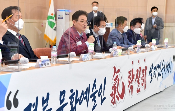 간담회 중 이철우 도지사가 직접 주재하여 진행한 ‘민생 애로사항 건의 및 답변의 시간’에는 코로나19가 장기화되면서 공연취소, 관람객 급감 등으로 생존을 위협받고 있는 문화예술, 공연업 종사자들의 애로사항 건의가 이어졌고, 이에 대해 도지사와 관련 전문가들은 현장에서 격의 없이 소통하며 애로사항을 하나하나 집중적으로 해결했다.특히, 지난해 12월 10일부터 ‘예술인 고용보험법’이 시행되었지만 여전히 예술인은 법과 제도 밖에서 불공정한 환경과 불안정한 지위에 노출돼 사회안전망 마련이 시급하다는 문제 제기에 대해, 국회에 심사중인 ‘예술인의 지위 및 권리보장에 관한 법률’이 조속히 제정될 수 있도록 전국의 광역시‧도와 연대해 중앙부처에 적극적으로 건의하고, 도내 예술인들의 권리보호 및 고용안정에도 최선을 다하겠다고 답했다.이어 사회적 거리두기로 인해 국민들이 심리적 스트레스가 심각한 현재와 같은 상황에서 문화예술인들이 주체적으로 지역사회에서 공헌할 수 있는 장이 마련돼야 한다는 제안에 대해, 최근 지역 예술가들이 자발적으로 예술작품을 전시 판매하고 수익금 일부를 성금으로 기부한 ‘행복나눔! 경북예술장터’사업을 예로 들며 제안을 적극 수용했다.