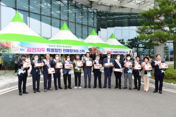 김천시(시장:김충섭)는 FTA등 수입개방에 따른 국내 농업 시장의 잠식등으로 많은 어려움을 겪고 있는 농업의 경쟁력 확보를 위해 새로운 시책과 비전 제시로 농업인에게 희망을 줄 수 있는 농정시책을 적극 추진하고 있다. 이는 지난해 코로나19의 어려운 여건 속에서도 농산물 수출 120억원 달성이라는 성과로 나타나며 올해도 신품종 딸기 수출을 시작으로 포도, 새송이버섯, 양파 등 150억원의 수출을 목표로 변모하는 농업, 부자농촌 김천으로 새롭게 거듭나기 위해 역량을 모으고 있다.