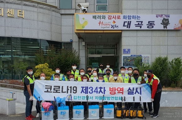 김천시 자율방범연합회(회장 전종만)는 관내 코로나 확산을 예방하기 위해 지난 5월 6일 부곡 맛고을 일원에서 방역 활동을 실시하였다.이날 김충섭 김천시장이 함께 방역 활동을 실시하였으며, ‘코로나 발생 후 34차례 방역 활동을 실시하고 있는 자율방범연합회가 코로나 확산으로부터 지역을 지키는 진정한 파수꾼이다.’라고 격려하였다.김천시 자율방범연합회는 작년부터 매주 목요일 관내 방역 취약지에 대한 집중 방역 활동을 추진하였으며, 올해는 연화지, 강변공원과 안산공원, 황금시장, 부곡 맛고을 등 시민들이 밀집하는 곳을 대상으로 현재까지 34차례에 걸쳐 꾸준히 방역 활동을 이어오고 있다.