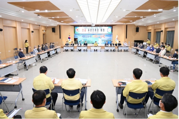 이날 회의는 최근 영농작업, 체육시설, 노인주간보호시설 및 유흥업소 등에서 코로나19 확진자가 집단 발생됨에 따라 이를 예방하고 확산 방지를 위한 대책 논의와 각 단체별 애로사항을 청취하고 현 사회적 거리두기 2단계의 방역수칙 준수 협조를 구하기 위하여 실시하게 되었다.그동안 시에서는 코로나19 총력대응을 위하여 읍면동 일제 방역의 날 운영, 4,900여 개소 다중이용시설에 대한 공무원 전담제 운영 등 부단한 노력을 해왔음에도 불구하고 확진자가 집단적으로 발생되어 방역수칙 준수의 필요성과 위기상황 극복을 위한 시민들의 자발적 동참과 소상공인들의 어려움 및 애로사항 등 경제적 피해 최소화 대책도 함께 논의했다.