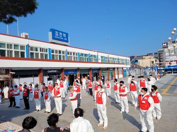 최근 김천지역 코로나19 확진자가 급증하며 시민들의 불안이 커지고 있는 가운데 국민의힘 김천당협은 많은 시민들이 오고가고 김천역과 주변일대에서 대대적인 방역 봉사활동을 했다.시내 곳곳에서 코로나19 신규 확진자가 연이어 발생함에 따라 주민들의 불안감이 커지고 있는 가운데 국민의힘 미래포럼에서 주관해 대대적인 방역 봉사를 지난 5월 1일 상무 축구단 홈경기가 열리는 종합운동장을 시작으로 관내 다중이용시설로 이어나가고 있다.