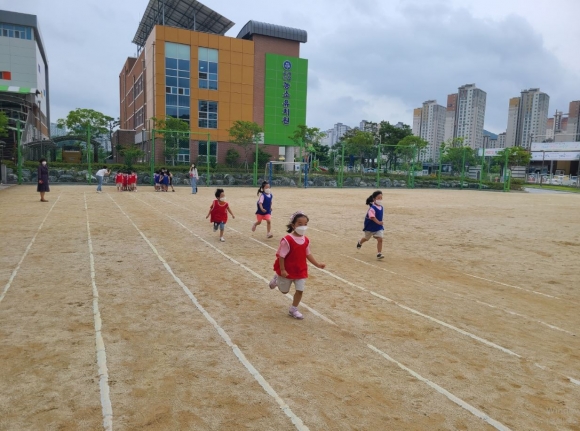 농소유치원(원장 우윤숙) 유아들은 6월 15일(화) 한 울타리안에 있는 농소초등학교 운동장에서 어울림 놀이를 했다. 6월 어울림 놀이 주제는 ‘맘껏 달리기’로 새싹반, 꽃잎반, 열매반이 홍팀과 청팀으로 나누어 함께 달리기를 하였다. 달리기 시작하기 전에 다 함께 운동장 트랙을 한 바퀴 돌고 난 후 스탠드에 앉아 같은 팀을 응원하며 차례를 기다려 새싹반, 꽃잎반, 열매반 순으로 달리기를 진행하였다. 코로나19로 인해 실내에서만 이루어졌던 활동에서 벗어나 넒은 운동장에서 자유롭게 마음껏 뛰는 경험을 통해 유아들의 스트레스 해소와 다른 연령간 어울림으로 전인발달을 도모하기 위함이다. 또한 새싹반, 꽃잎반 동생들을 위해 열매반 형님들은 트랙을 벗어나지 않는 시범을 보여주기도 하고 달리기를 마친 동생들에게 직접 도장을 찍어주기도 하였다. 꽃잎반 박oo은 “선생님 달리기 선 앞에 서니 심장이 너무 빨리 뛰었어요. 또 달려보고 싶어요.”라고 말하였고 열매반 최oo은 “선생님 제가 흰색선에 제일 빨리 도착했어요. 저 1등이에요.”라고 자랑하기도 했다. 앞으로 농소유치원은 매월 어울림 놀이를 통해 유아들이 함께 어울려 마음껏 놀이하는 경험을 통해 기초체력과 친사회성을 기를 수 있도록 유아들에게 다양한 놀이를 제공 할 예정이다. |