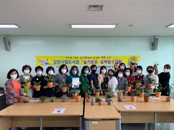 강연 도입부에는 백범 김구(白帆 金九)선생의 백범일지를 소개하고, 선생이 당시‘김천 부항면 월곡리’의 지인을 찾아와 생활하게 되면서, 지인의 권고로 ‘김창암’이라는 원래 이름에서 ‘김구’로 개명하게 된 김천과의 일화를 소개하기도 했다.또한 코로나 팬데믹 시대를 맞이해, 복합적인 생태계의 안정적인 식성을 유지하고, 숲과 나무를 지키면서도 감염을 예방할 수 있는 감염병 극복 방안도 함께 살펴보았다. 작가는 자연과 숲의 파괴는 결국 생태계 파괴로 이어져 인간의 생존을 위협하게 됨을 설명하면서, 인류가 자연과 더불어 살아가기 위해서는 특히 숲과 나무를 보존하고 지켜내야 한다는 점을 강조하였다. 한편, 슬기로운 실버탐구생활은, 초고령화 시대 노년의 삶과 문화에 대한 이해를 돕고, 도서관이 노년층의 삶을 함께 가꾸는 구심점 역할을 하고자 새롭게 기획된 프로그램으로, 총 430여명이 넘는 시민들이 참여했다아름답게 나이 들어가는 노년을 탐구하고 인생을 새롭게 디자인해보는 인문 강연은 물론, 규방 공예와 라탄DIY 수업, 그린테라피를 위한 숲과 정원 강연에 이르기까지 ‘파워시니어’들이 참여하고 즐길 수 있는 프로그램들로 구성되어, 최근 코로나로 부족했던 시민들의 문화 욕구를 충분히 채울 수 있었다.백선주 김천시립도서관장은 “앞으로 중장년층 시민들이 도서관에서 여가를 즐기고 관계 맺기를 통해 건강한 노년생활을 향유할 수 있도록 예술, 역사, 문학을 아우르는 다양한 프로그램을 운영함으로써 지적 호기심 자극과 배움에 대한 동기부여는 물론, 적극적인 사회 참여 기회를 제공하는데 힘쓰겠다.”고 전했다.