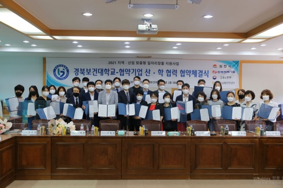 김천시와 경북보건대학교(단장 이은직) 산학협력단은 고용노동부가 주관하고 한국전력기술(주)과 한국교통안전공단이 후원하는 ‘2021 신중년 일자리를 위한 NEW-START 인력양성사업’의 원활한 수행을 위해 각 기관과 협약을 체결하는 자리를 가졌다.