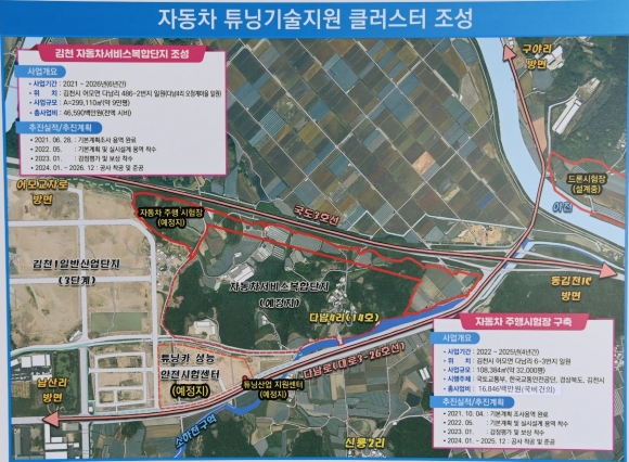 이날 양 기관장은 굵직굵직한 지역 사업 현황을 공유하고 추진 방향을 점검하였다. 도합 1,162억원이 투입되는 대규모 사업으로(튜닝카 성능·안전 시험센터 405억, 김천 자동차 서비스복합단지 460억, 지역거점 드론 실기시험장 297억) 김천시와 한국교통안전공단이 지역 특색과 이전 공공기관의 특성을 살려 추진 중인 역점사업이다.튜닝카 성능·안전 시험센터 사업은 2023년까지 총사업비 405억을 투입하여 김천1일반산업단지 3단계 내에 53,000㎡ 규모로 튜닝카 성능·안전 시험센터, 튜닝 컨설팅·교육 센터 구축하는 사업이다. 이미 금년 초에 행정안전부의 중앙투자심사를 통과하여 사업의 타당성을 확인받았다. 해당 센터는 증가하는 캠핑카 등 튜닝 자동차의 성능 및 안전성을 점검하고 관련 종사자 교육을 도맡게 될 예정이다.