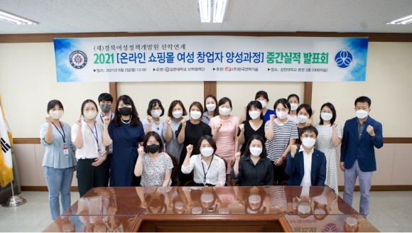 김천대학교(총장 윤옥현) 산학협력단(단장 백열선)은 8월 02(월) 김천대 대회의실에서 경상북도청(이영주 주무관), (재)경북여성정책개발원(이수경 본부장 외), (주)한국전력기술(남군우 팀장), (주)NH고도(강우영 전임강사) 및 김천대학교 관계자가 참석한 가운데 2021년 여성일자리본부 산학연계 ’온라인 쇼핑몰 여성창업자 양성과정‘ 중간 실적 발표회를 개최했다.