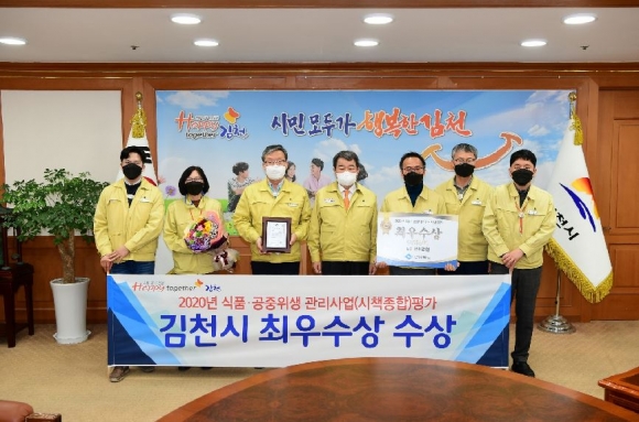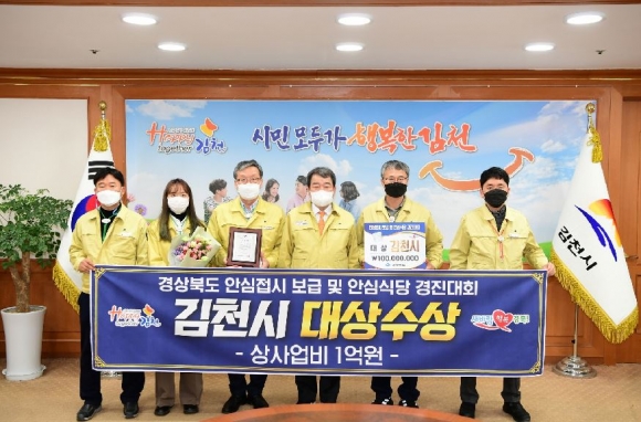 또한 야외 스피커와 조명 등을 설치하여 음악과 조명이 흐르는 아름다운 연화지가 되도록 조성할 계획이다.9. 음식문화 개선 안심식당 경진대회 대상 수상경상북도가 코로나19 확산 방지를 위해 전국에서 선도적으로 추진한 안심접시와 안심식당 지정제 경진대회에서 김천시가 대상 수상과 함께 시상금 1억 원을 받았다. 김천시는 2020년도에 음식문화 개선을 위하여 앞접시 보급과 입식테이블 교체 지원 , 앞지 제작보급 등을 위한 예산을 적극 확보하였고, 코로나 상황 극복을 위해 안심식당 지정 등 관련 시책을 적극 추진하여 왔다. 특히 친절, 질서, 청결을 중심으로 하는 Happy together 김천 운동을 시민운동으로 확산하는 점에서 타 지자체보다 우수한 점수를 받았다. |