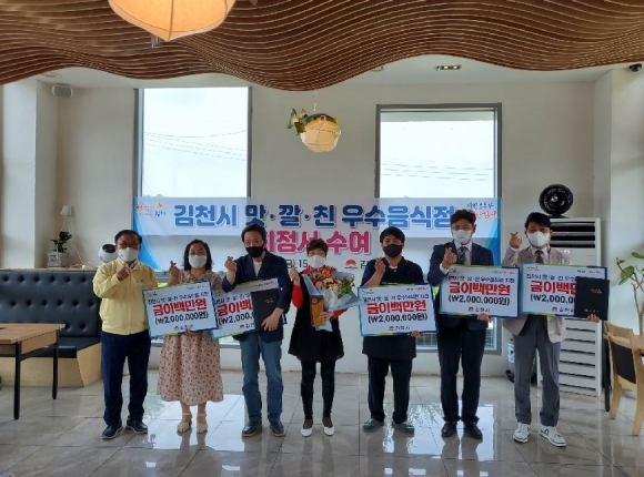 5. 『찾아라! 김천의 안심맛집 SNS 공모전』 개최소셜미디어를 활용하여 소비자들이 직접 김천의 맛집을 소개하고 참여한 결과를 공모하여 맛과 위생분야로 평가된 우수 맛집을 관광용 콘텐츠로 개발한다. 이를 위해 SNS(블로그, 인스타그램, 페이스북, 카카오스토리 등) 공모전을 실시하여 현대인의 입맛과 음식 소비문화를 바탕으로 건전한 식문화 소비를 확산할 기회로 적극 활용한다.6. 민간 참여 확대를 통한 음식문화개선건전한 음식문화 정착을 위해 위생업소 서포터즈를 결성하여 주방내부와 냉장고 등을 청결하게 유지하고 조리기구와 조리용품을 세척․살균하고 친절하고 청결한 업소분위기 만들기를 홍보한다. 위생복과 위생모를 착용하고 개인 위생관리를 준수하는 『매월 10일 주방 대청소의 날』을 운영하여 시민이 함께 더불어 사는 사회분위기를 만들어 나가겠다.