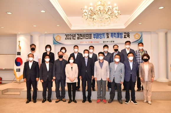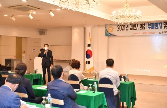 이우청 김천시의회 의장을 비롯한 시의원과 의회사무국 직원 등이 참석한 이날 교육은 코로나 19 확산 방지를 위한 발열체크, 마스크 착용, 거리두리 유지 등 방역 수칙을 철저히 준수한 가운데 진행됐다.한국청렴리더십 김정현 소장이 강사로 나선 부패방지 및 청렴교육에서는 청렴한 사회의 중요성, 이해충돌방지법의 이해, 청탁금지법 준수 등 사례위주의 현장감 있는 교육으로 구성하였다.