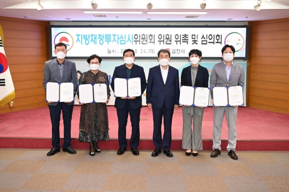 김천시(시장 김충섭)는 24일 김천시청 2층 회의실에서 지방재정투자심사위원회 및 재정공시심의위원회 민간위원 7명에 대한 위촉장을 수여하고 위원회를 개최하였다.이날 회의에 앞서 위원장으로 선출된 이장재 위원장은 “시에서 추진하는 주요 투자사업에 대해 사업의 타당성·효율성에 중점을 두고 사업에 대한 면밀한 심의를 통해 재정 및 시정발전에 기여하겠다.”라고 말했다.이날 투자심사위원회는 ▲전통한옥촌 조성사업(58억 원), ▲디지털 물류 서비스 실증(40억 원), ▲스마트타운 챌린지(30억 원), ▲친환경 미생물 배양실 신축 및 장비구축(25억 원), 총 4개 사업을 대상으로 소관부서장의 제안 설명을 직접 듣고 질의하는 방식으로 진행되었으며,주요 투자사업의 필요성 및 타당성, 주민 수혜도, 중·장기 지역계획 및 지방재정계획과의 연계성 등을 검토하여 예산의 계획적·효율적 운영과 각종 투자사업에 대한 무분별한 중복투자 방지를 목적으로 심사했다.