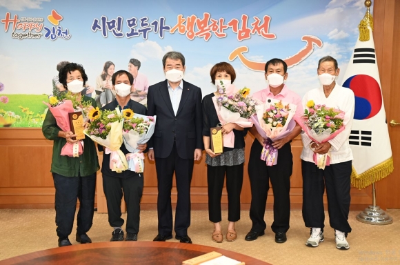 김천시(시장 김충섭)는 지난 31일(화) 가족사랑과 이웃사랑을 적극 실천하여 지역 노인복지증진에 기여한 효행자(3명)에 대해 표창패를 수여하고 격려하였다.이번에 효행으로 표창을 받은 대상자는 모두 효를 생활근본으로 화목한 가정을 이루며 살고 있으며, 고령의 부모님은 물론 같은 마을에 살고 있는 이웃 어르신들이 생활의 불편함이나 어려움을 겪지 않도록 손발이 되어 보살펴 주는 등 웃어른을 정성껏 봉양하여 지역사회와 자라나는 다음세대에 귀감이 되고 있어 표창을 받게 되었다.효행자 모두 읍면동에서 추천이 된 대상자로 당초 9월 정례조회 시 표창패를 수여할 예정이었으나, 코로나19 발생이 지속되고 있어 간소하게 가족 분들만 참여하여 축하하는 시간을 가지게 되어 많은 아쉬움이 있지만, 우리의 전통미풍양속인 경로효친 사상을 확산시키고, 어르신을 공경하는 사회적 분위기 조성에 기여한 효행자들의 아름다운 삶의 향기가 지역사회에 널리 전해져야 할 것이다. 김충섭 김천시장은“어려운 여건 속에서도 희생과 헌신으로 부모님을 성심껏 봉양하고 두터운 가족애와 이웃사랑을 몸소 실천하고 계신 분들께 깊은 감사를 드린다. 어른을 공경하는 문화가 점차 사라져가는 시대에 이러한 효행이 많은 시민들에게 귀감이 되어 모든 세대가 함께 행복한 김천시를 만들어 가는 계기가 되길 바란다.”고 전했다. |