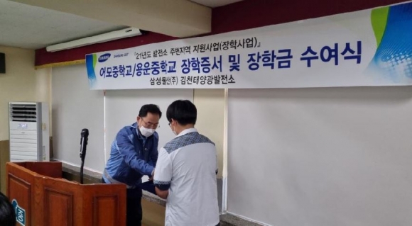 어모중, 삼성물산(주)김천태양광발전소 장학금 전달식 개최