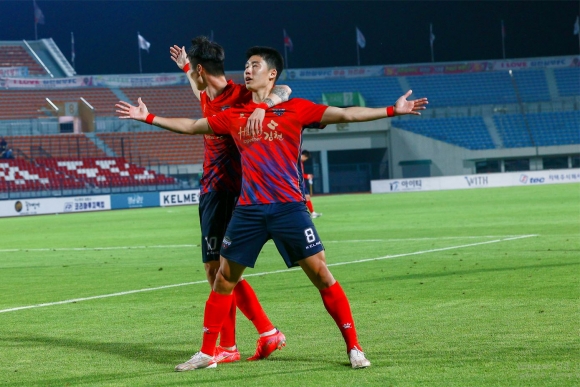 김천상무프로축구단(대표이사 배낙호)이 13일 오후 7시 30분 김천종합운동장에서 충남아산FC(이하 아산)와 ‘하나원큐 K리그2 2021’ 29R 홈경기를 치른다. 김천은 최근 8경기에서 5승 3무로 무패행진, 1위를 기록 중이다. 더욱이 국가대표로 차출되었던 구성윤, 정승현, 박지수, 조규성이 돌아오면서 아산을 상대하는 김천의 전력은 더욱 강화될 전망이다. □ 김천, 신-구 조화로 승점 전쟁 우위 점한다! 김천은 직전 라운드 서울이랜드와 홈경기에서 국가대표 차출, 공격수들의 경고누적 등 이유로 선발 라인업을 대거 교체했다. 풀백 유인수의 공격수 전환과 더불어 오현규, 정재희가 공격수로 선발 출전했다. 중원도 신병 문지환-고승범이 호흡을 맞췄고 송주훈은 센터백으로 나섰다. 여러 변수가 겹치면서 모험적인 실험 전술로 나섰지만 결과는 성공적이었다. 김태완 감독은 “국가대표 차출 공백으로 인해 조직적으로 완벽하지는 않았다. 하지만 선수들의 의지가 강했고 특히 신병 선수들에게 칭찬을 보낸다”고 전했다. 김천은 국가대표 자원들의 복귀로 더욱 강해진 상태로 아산을 상대한다. 11경기 5실점으로 0점대 실점률을 자랑하는 구성윤과 차출 직전 2경기에서 연속골을 터뜨린 조규성까지. 김천은 막강한 전력으로 아산에 맞설 예정이다. □ 돌아온 박동진-허용준, 골잔치 즐긴다!김천의 골게터 허용준, 박동진이 경고 누적에서 돌아온다. 17경기 7골 3도움으로 김천의 득점왕을 달리고 있는 허용준과 16경기 6골 2도움으로 득점 2위를 기록 중인 박동진은 아산을 향해 창을 겨눌 예정이다. 골게터들에 힘입어 김천은 최다득점(44득점) 팀으로 거듭났다. 뿐만 아니라 허용준과 박동진 모두 아산을 상대로 득점을 기록했기에 더욱 기대되는 이유다. 반면, 아산의 골게터인 김인균은 경고 누적으로 이번 경기에 출전하지 못한다. 한 경기의 휴식 이후 돌아온 허용준과 박동진이 아산전에서 어떠한 공격력을 보여줄지 귀추가 주목된다. 한편, 13일 아산과 홈경기는 TV중계 스카이스포츠(U+tv 111번, 올레tv 54번, Btv 125번, sky life 202번), 온라인 중계 네이버TV, 다음 카카오, 아프리카TV에서 시청할 수 있다. |