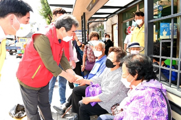김충섭 김천시장은 추석을 앞둔 15일 평화시장, 황금시장 등 코로나19 장기화로 침체된 전통시장에 활력을 불어넣기 위해 장보기 행사를 가졌다.특히 이날 행사에는 김충섭 시장이 시장 내 상점 곳곳을 찾아 코로나19 장기화로 어려움을 겪고 있는 전통시장 상인들을 격려하고 애로사항을 청취․소통하는 현장 행정을 펼쳤으며, 명절 장보기에 나선 시민들에게 품질 좋은 우리지역 농산물이 가득한 전통시장에 많은 관심을 가지고 이용해 줄 것을 당부하며, 전통시장 이용에 대한 감사 인사를 전하기도 했다.