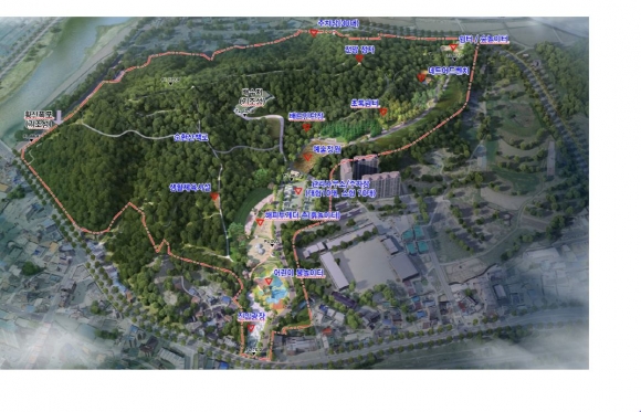 황산공원, 가족단위 휴식공간으로장기미집행 공원 일몰제에 대비해 추진된 지좌 황산공원은 2019년도에 설계에 착수해 현재 토지보상 및 용역을 추진 중에 있으며, 금년 중 보상 및 설계를 완료해 2022년 공사에 착공할 예정이다.주요 도입시설은 산책로, 광장, 물놀이시설, 흙놀이터, 초록쉼터, 네트어드벤처 등이 있으며, 그동안 급경사로 인해 이용이 불편했던 황산을 다양한 산책로와 데크길 조성으로 주민들이 자유롭게 이용할 수 있게 접근성을 높일 계획이다.그 동안 구도심 속에 아이들과 함께 이용할 가족단위시설이 부족했는데, 지좌 황산공원에 흙놀이터, 물놀이시설, 네트어드벤처 등을 계획하여 가족들이 아이들과 편안하게 이용하도록 계획됐다. 또한 훼손된 숲을 복원하고 편백나무 숲 등을 조성해 치유와 휴식의 공간으로 재탄생시킬 예정이다. |
