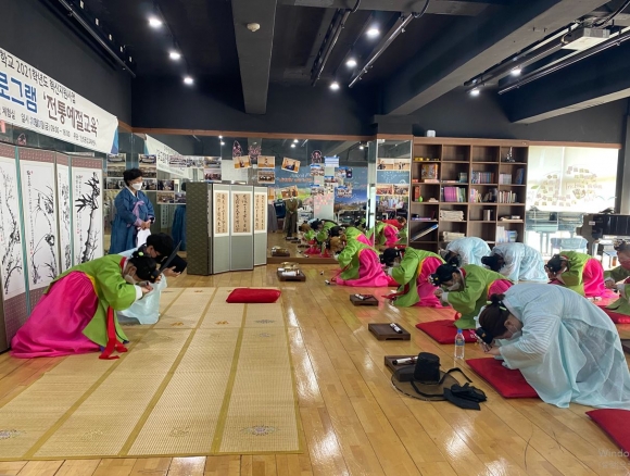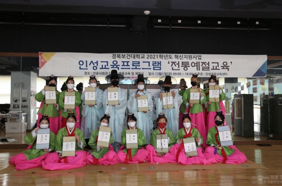 경북보건대학교(총장 이은직) 인성공감교육센터(센터장 채승용)는 2021학년도 전문대학 혁신지원사업-인성 및 공감능력 교육 혁신프로그램의 일환으로 10월 1일(금) 삼락관에서 ‘전통예절교육’ 프로그램을 실시하였다.