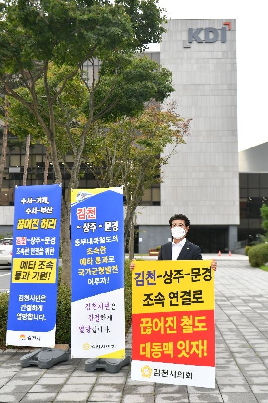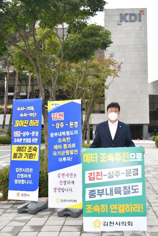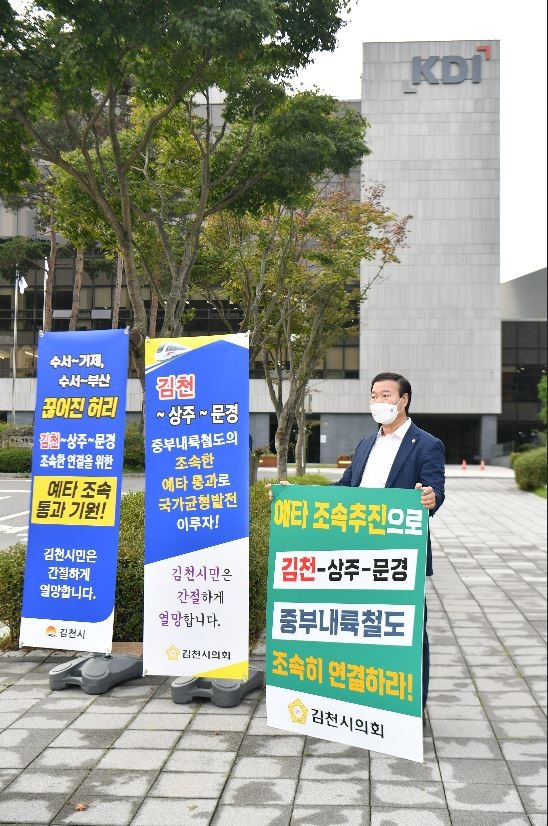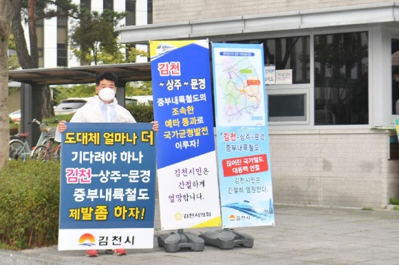 김천시의회, 중부내륙철도 단절구간 예타 조속통과 1인시위 나서