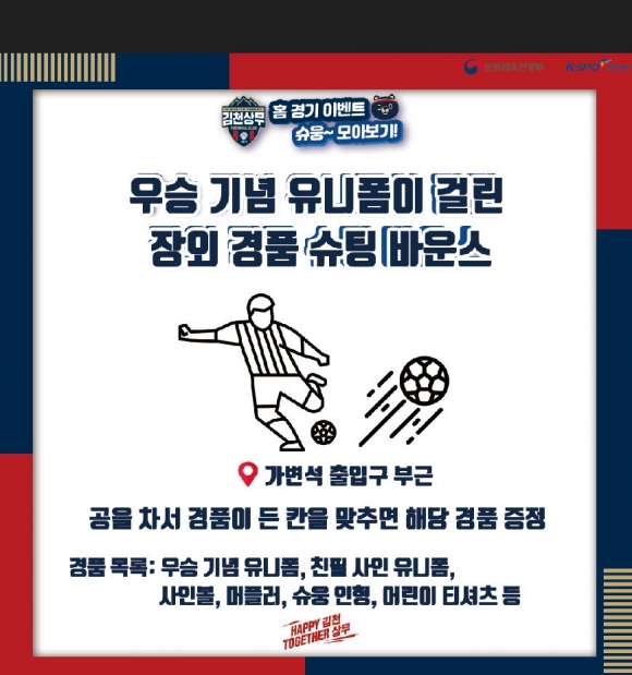‘우승확정’ 김천상무, 전남전 홈경기서 전 관중 대상 무료 MD 대방출!