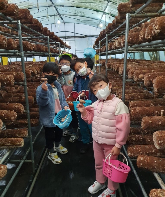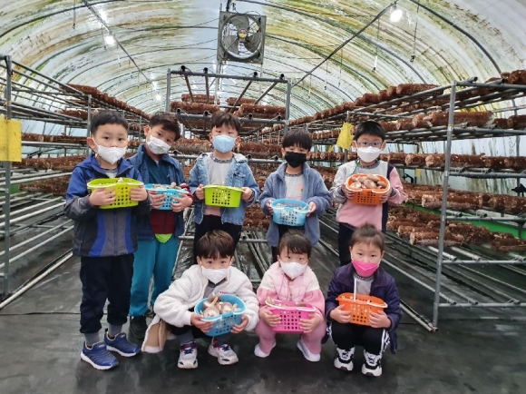 표고버섯 농원에 도착해서 농원 아저씨의 표고버섯의 성장 과정과 버섯을 따는 방법에 대해 설명을 들은 후 표고버섯 재배동 안으로 들어가 버섯 따기 체험을 시작하였다. 직접 표고버섯의 생김새를 관찰하고 버섯의 촉감을 느끼고 버섯의 냄새를 맡으며 바구니 가득 버섯을 딴 후 유아들은집에서 맛있게 요리해서 가족과 나누어 먹고 싶어요라며 나누고자 하는 마음도 표현하였다. 김천부곡초등학교병설유치원(원장 김경숙)은 “이번 체험학습을 통하여 직접 표고버섯을 관찰하고 만져보며 자연의 소중함과 올바른 식습관을 형성해 나갈 수 있는 소중한 시간이 되었다‘라고 하였다. |