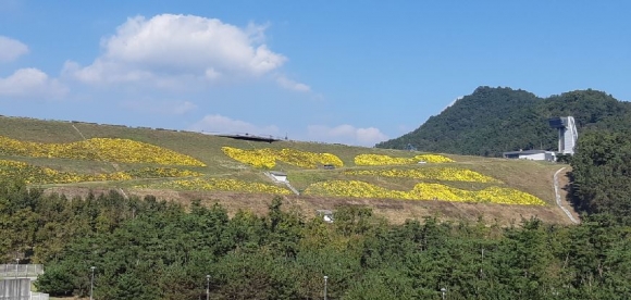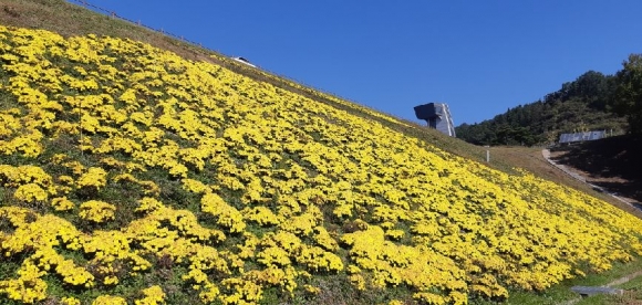 노란색 국화꽃 단장 부항댐, 가을정취 가득