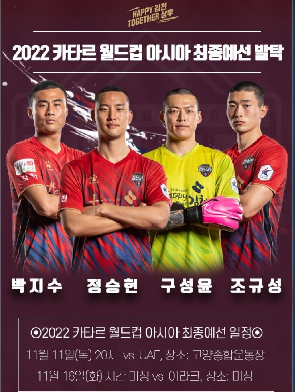 ’승격확정‘ 김천, 구성윤-박지수-정승현-조규성 국가대표 발탁
