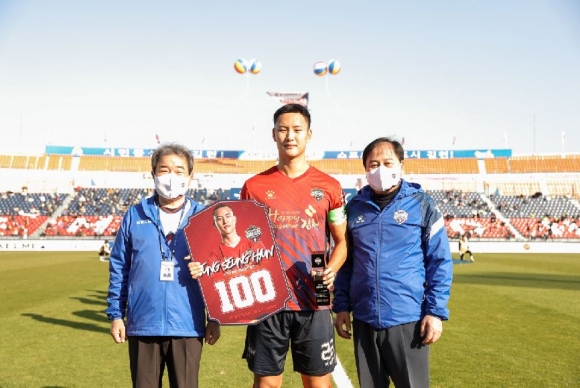 3, 프로통산 기록(커리어하이, 100경기) 달성 선수공격수 사관학교로 불리는 김천에서 세 명의 선수가 커리어하이를 작성했다. 박동진은 올 시즌 9골 2도움을 기록하며 2019년 FC서울에서 세운 6골 3도움의 기록보다 더 많은 공격 포인트를 올렸다. 오현규 역시 2020년 상주에서 달성한 2골보다 더 많은 5골, 3도움을 올렸다. 2019년 제주에서 데뷔한 서진수는 그해 4도움을 기록하며 최고의 시즌을 보냈지만 올 시즌 2골 3도움을 기록하며 프로 데뷔골까지 터뜨렸다. 수비수 심상민과 정승현도 각각 3도움, 5득점을 기록하며 뜻깊은 한 해를 보냈다. 3의 또다른 의미는 김천에서 프로통산 100경기를 달성한 선수의 수다. 심상민은 1R 안산그리너스 원정에서 개인 프로통산 100경기를 달성했고 정원진과 정승현은 각각 23R 부천전, 35R 전남전에서 100경기 출전 기록을 세웠다. 4, 김천의 국가대표 선수김천은 올 시즌 네 명의 국가대표를 배출했다. 센터백 박지수, 정승현과 골키퍼 구성윤, 공격수 조규성까지. 조규성은 지난 8월 23일 발표한 국가대표 명단에 생애 처음으로 포함된 데 이어 2022 카타르 월드컵 아시아 최종예선 3·4차전(시리아-이란전), 5·6차전(아랍에미리트-이라크전)에도 이름을 올렸다. 조규성 뿐 아니라 네 명의 선수들이 꾸준히 국가대표로 발탁되며 김천의 명예를 높였다. 5, 최다 연속 승리 수 & 시즌 총 패배 수 김천은 올 시즌 두 번의 5연승을 기록하며 승점을 모았다. 6월 6일 안산전을 시작으로 경남, 서울이랜드, 충남아산, 대전까지 꺾으며 연승가도를 달렸다. 9월 4일 서울이랜드 전부터 충남아산, 경남, 대전, 안산전까지도 모두 승리하며 다시 한 번 5연승을 기록했다. 이는 K리그2 최다연속 승 기록에도 포함된다. 5는 올 시즌 김천의 시즌 총 패배수도 뜻한다. 김천은 2021 시즌 36경기에서 20승 11무 5패를 기록했다. 1라운드 로빈에서 기록한 4번의 패배와 지난 7월 10일 안양전 패배가 전부다. 2위 안양은 올 시즌 9번의 패배의 아픔을 맛봤다. 6, 최다 득점 차 승리 올 시즌 김천은 부산을 상대로 6대 0 대승을 거두며 최다 득점 차 승리로 승점 3점을 쌓았다. 6대 0 승리는 올 시즌 K리그 1,2를 통틀어 가장 많은 점수 차가 난 맞대결이다. 전북, 울산도 5대 0 승리는 있었지만 6대 0 승리는 없었다. ‘승격확정’ 김천상무 숫자로 돌아보는 창단 첫 해 下편에서 계속됩니다. |