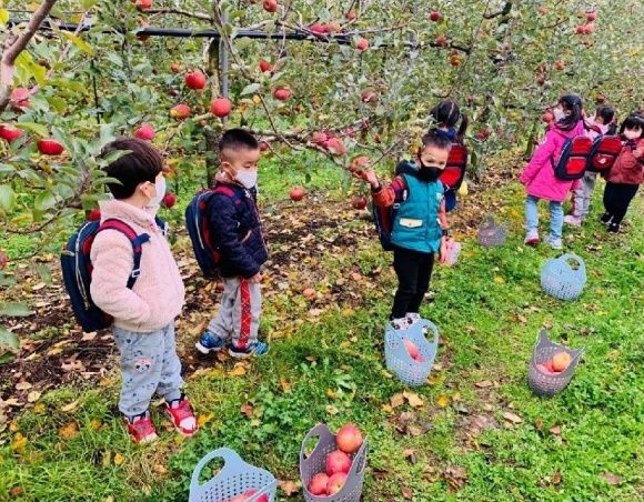 감천초등학교병설유치원(원장 임병록)은 11월 9일(화) 유치원 네트워크 운영으로 유치원 사과 따기 현장 체험학습을 실시하였다.버스를 타고 노래를 부르며 사과 농장으로 향했다. 가을이라 형형색색의 가을 단풍들이 아주 멋있게 색을 뽐내는 것 같아 유아들은 서로 단풍이 예쁘다고 이야기한다.