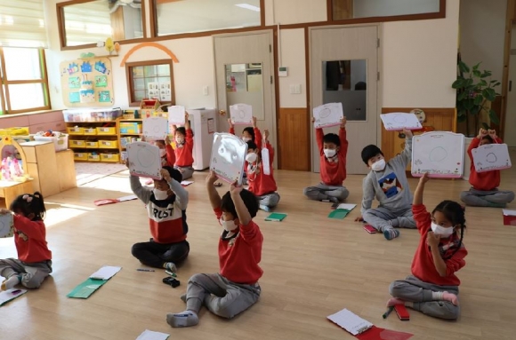 독서퀴즈 놀이는 그림책을 8권을 선정하고 가정에 안내하여 가족과 함께 퀴즈놀이를 하도록 하여 관심과 참여를 높였다. 진행은 모든 유아들이 탈락 없이 문제를 끝까지 푸는 방법으로, 정답을 맞히면 각자 스티커를 받도록 하였으며 유아들이 만든 문제를 선정하여 흥미를 높였다독서퀴즈를 시작하자 “선생님 떨려요.”, “재미있을 것 같아요.”라며 긴장과 설레는 눈빛으로 집중하는 모습을 보였다. 유아들은 귀를 쫑긋하고 문제를 놓치지 않으려 한 문제 한 문제 집중해 풀고는 정답이 공개될 때 마다 환호와 아쉬움이 교차하면서 흥미진지하게 진행 되었다.퀴즈놀이가 끝나고 “집에서 퀴즈놀이를 해 볼래요.”, “그림책에 재미있는 이야기가 많았어요.” 라며 책과 함께 하는 또 하나의 즐거움을 알게 되었다. 독서퀴즈놀이에 함께 참여하고 지원한 김태표 원감은 “책속의 주인공처럼 우리 아이들이 무궁무진한 탐험을 즐기면서 상상력과 창의력을 펼치는 이 세상의 주인공이다.” 라며 유아들을 응원하였다. |