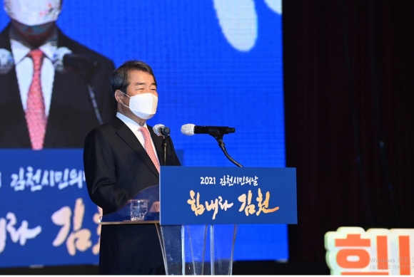 김충섭 김천시장은 기념사에서 "코로나19로 힘들고 어려운 시기지만 시련 앞에 더욱 강해지는 김천인의 정신으로 시민 모두가 합심하여 잘 이겨내고 있고, 그 힘을 성장동력으로 김천이 점점 커지고 발전하고 있다.”며, "시민들의 단결된 힘과 화합을 통해 새로운 미래와 역사를 만들어가자.”고 밝혔다.