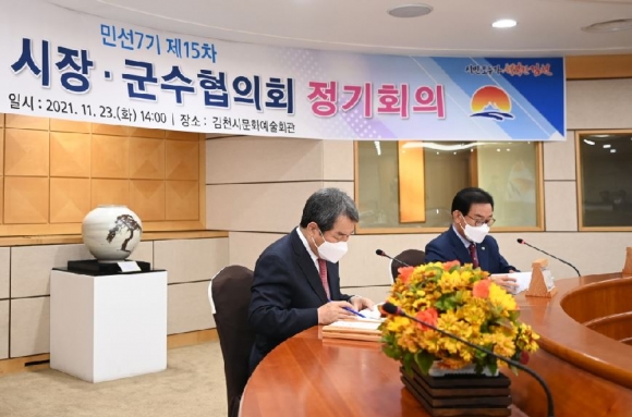 김천시(시장 김충섭)는 23일 문화예술회관 국제회의실에서 도내 시장군수 및 관계 공무원이 참석한 가운데 제15차 경상북도시장군수협의회 정기회의를 개최했다.이날 정기회의에서는‘농작물재해보험 가입 품목 확대’및‘경상북도 농어민수당 시·군 분담 비율 및 지급 시기’등에 대해 협의했으며 총 7건의 건의 사항을 채택하여 중앙부처와 경상북도에 전달하기로 결정했다.