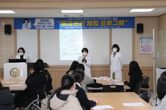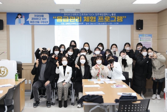 경북보건대학교(총장 이은직)는 간호학부 주관으로 김천여자고등학교의 보건 동아리에서 활동하는 1, 2학년생 19명과 손기윤 지도교사 등 관계자들이 대학을 방문한 가운데 '응급관리 체험 프로그램'으로 진로를 체험하는 행사를 진행했다고 25일 밝혔다.간호학부 교수 등 대학 관계자들이 참석한 가운데 김천 여자고등학교 간호 동아리 학생들을 강의실에서 만난 간호학부 학부장 백경화 교수는 먼저 학생들에게 환영인사를 전하며 '자신감을 가져라'고 주문하고 간호학부의 특장점 설명을 시작으로 도입을 열었다.