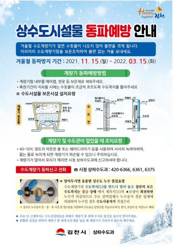 김천시, 겨울철 수도계량기 동파 대비 당부