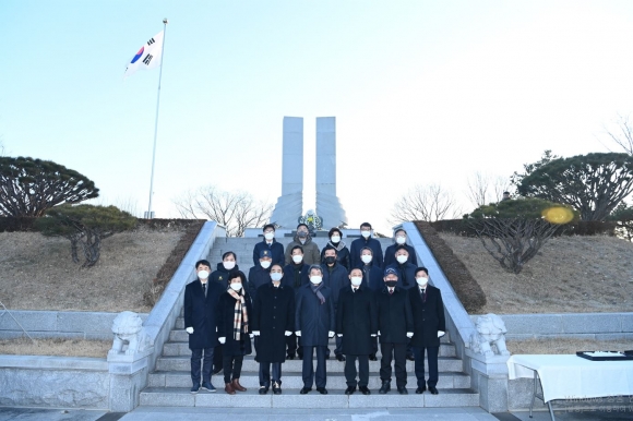 김충섭 김천시장은 1월 3일 오전 8시에 성내동 내 충혼탑에서 임인년 새해 참배를 했다.이번 참배는 최근 전국적으로 코로나19 확진자수가 증가함에 따라 지역의 추가확산을 예방하기 위해 방역 수칙을 준수하고, 최소의 인원이 참여한 가운데 진행했다.